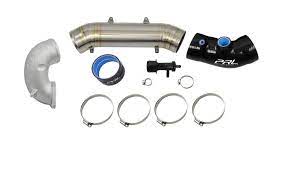 Maximize your FK8's engine intake system and turbocharger potential with the PRL Motorsports Turbocharger Inlet Pipe Kit. This kit is a direct bolt-on upgrade that eliminates intake airflow restriction before the turbocharger, allowing the turbocharger to operate more efficiently. Our design utilizes a cast aluminum inlet piece to allow smooth transition from the gasket-matched 64mm ID compressor inlet to a 80mm OD / 78mm ID outlet throughout the Titanium crossover pipe. This kit is the largest inlet pipe available and offers over a 50% increase in airflow volume in comparison to the factory inlet pipe! Increased bottom-end power and spool.