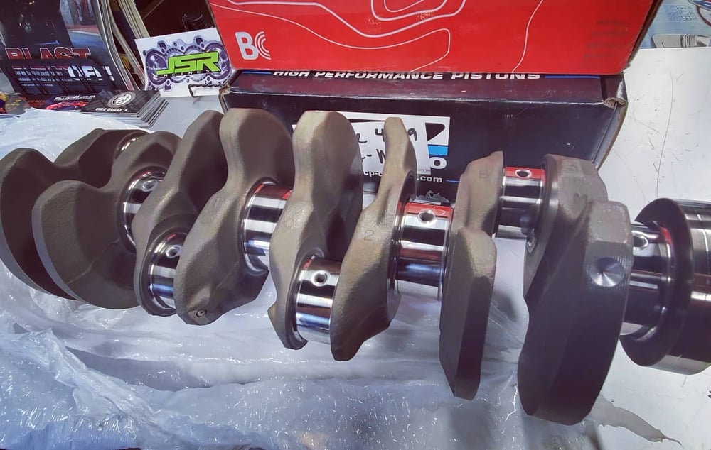 The first step in understanding crankshaft balancing is to understand the purpose of the counterweights. The counterweights are designed to offset the weight of the rod and pistons. You have the weight of the crankshaft and the pistons and rods. At any point in the assembly’s rotation, the sum of all of the forces are roughly equal to zero. If the counterweights are the correct weight to offset the weight of the rods and pistons, the crankshaft is balanced. If the counterweights are too heavy, material must be removed by drilling or milling the counterweights. If the counterweights are too light, weight must be added to the counterweights. This is usually done by drilling a hole in the counterweight and filling the hole with “heavy metal” or “mallory”. This filler metal is denser and heaver than steel (but not stonger) so the weight of the counterweight will increase as a result.